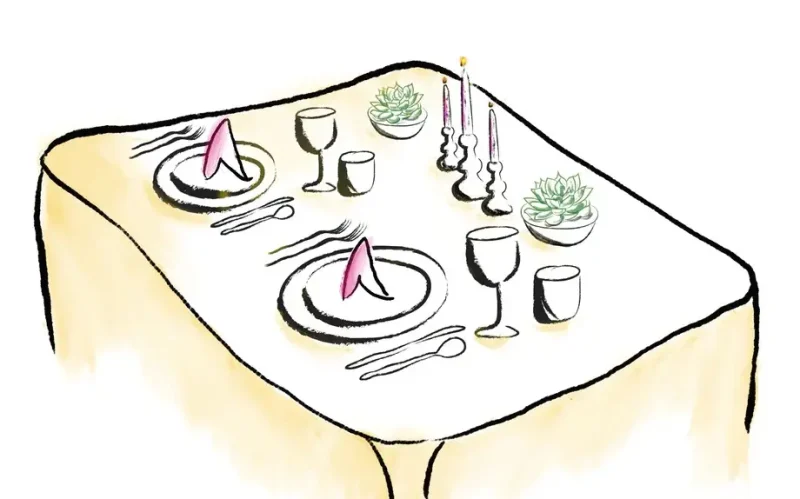 Before you jump into the actual meal, you’ll need to make sure the environment you’re creating feels restaurant-quality. Fear not, there’s no last-minute trips to a hardware or craft store – everything you need is most likely in your home. Start with the table itself: pull that old tablecloth out of the linen closet that you haven’t used since…ever, and jazz it up from there. Whether it’s a table setting or the actual plate of food (we’ll get to that), height is your friend: set a big dish for the main course first, then a smaller appetizer dish on top, and a standing folded napkin in the middle of your appetizer dish. Set out your flatware for each table setting and glasses for water and wine. Liven up the tablescape with a green succulent or a small vase of fresh flowers in the center for some color and pop. Light a few white, unscented tapered candles for the center of your table and gently dim the rest of the lights for a romantic vibe instead of a fluorescent one.